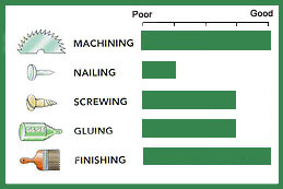 A versatile wood that is easy to machine, plane, turn, glue and bore. It dries easily with minimal movement in performance and has little tendency to split when nailed. It takes and holds paint, enamel and stain exceptionally well.